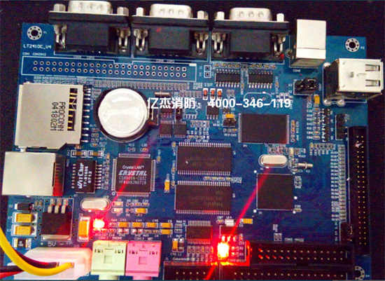 利達消防主機板上關鍵芯片:AMS1084CM 3.3、CS8900A-CQ3Z、20M晶振;S3C2410AL-20(32位LCD控制微處理器)、HY57V561620FTP-H 2片64M內存、K9F1208U0B-PCB0(引導主控程序);H13A(轉換1.8V) 、UDA1341TS(音頻)、12M32.768晶振;MAX706S(看門狗、低電平復位)、MAX3232(串口芯片)。